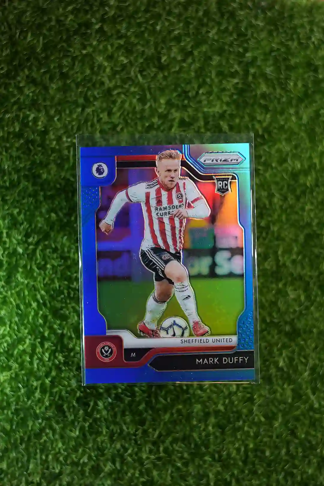 & Free Shipping2019 Prizm Premier League Soccer Mark Duffy Rookie Card (RC) Blue Prizm parallel, numbered to 199.