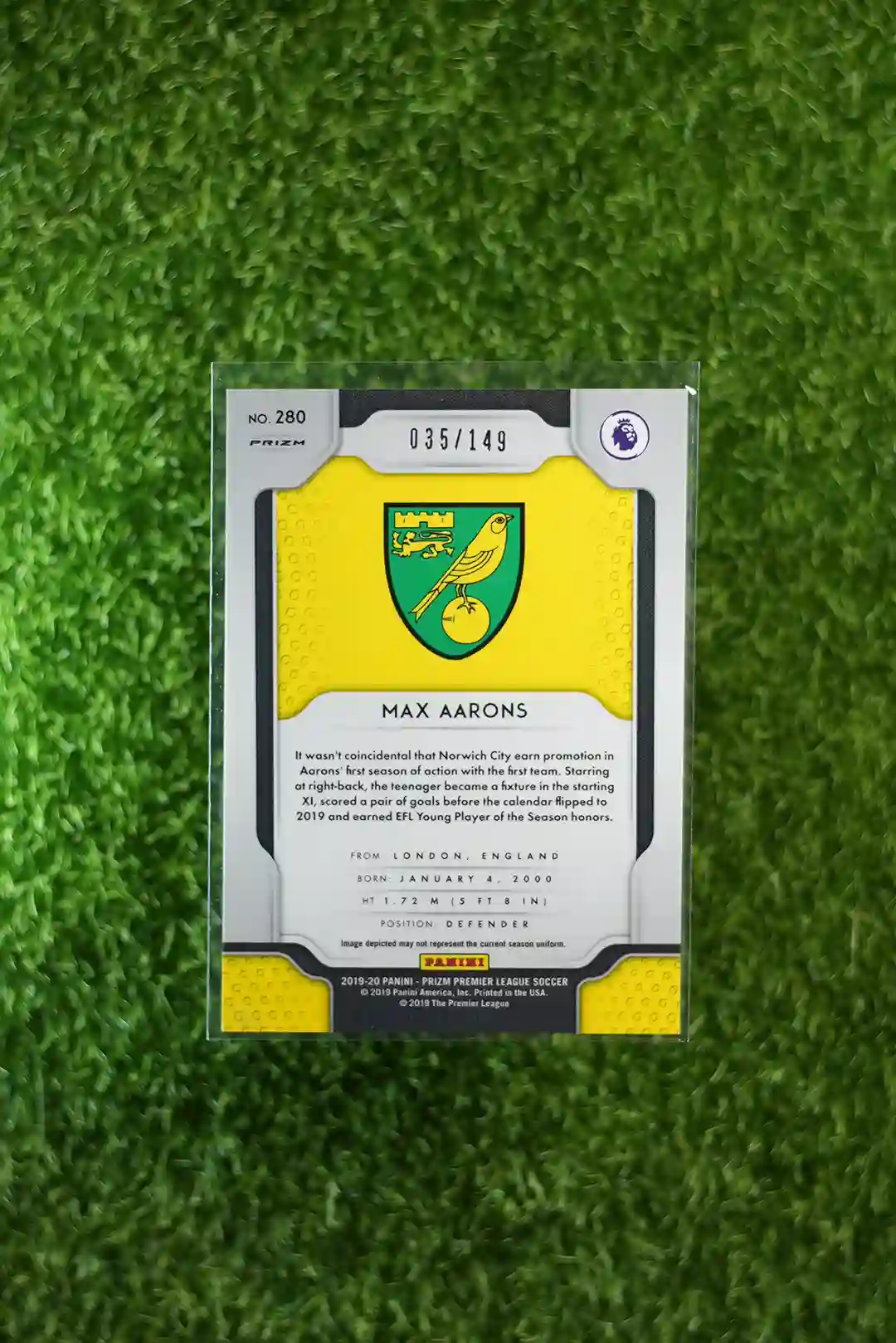& Free Shipping2019 Prizm Premier League Soccer Max Aarons Red Prizm Rookie Card (RC). This vibrant parallel is limited to 149 copies.