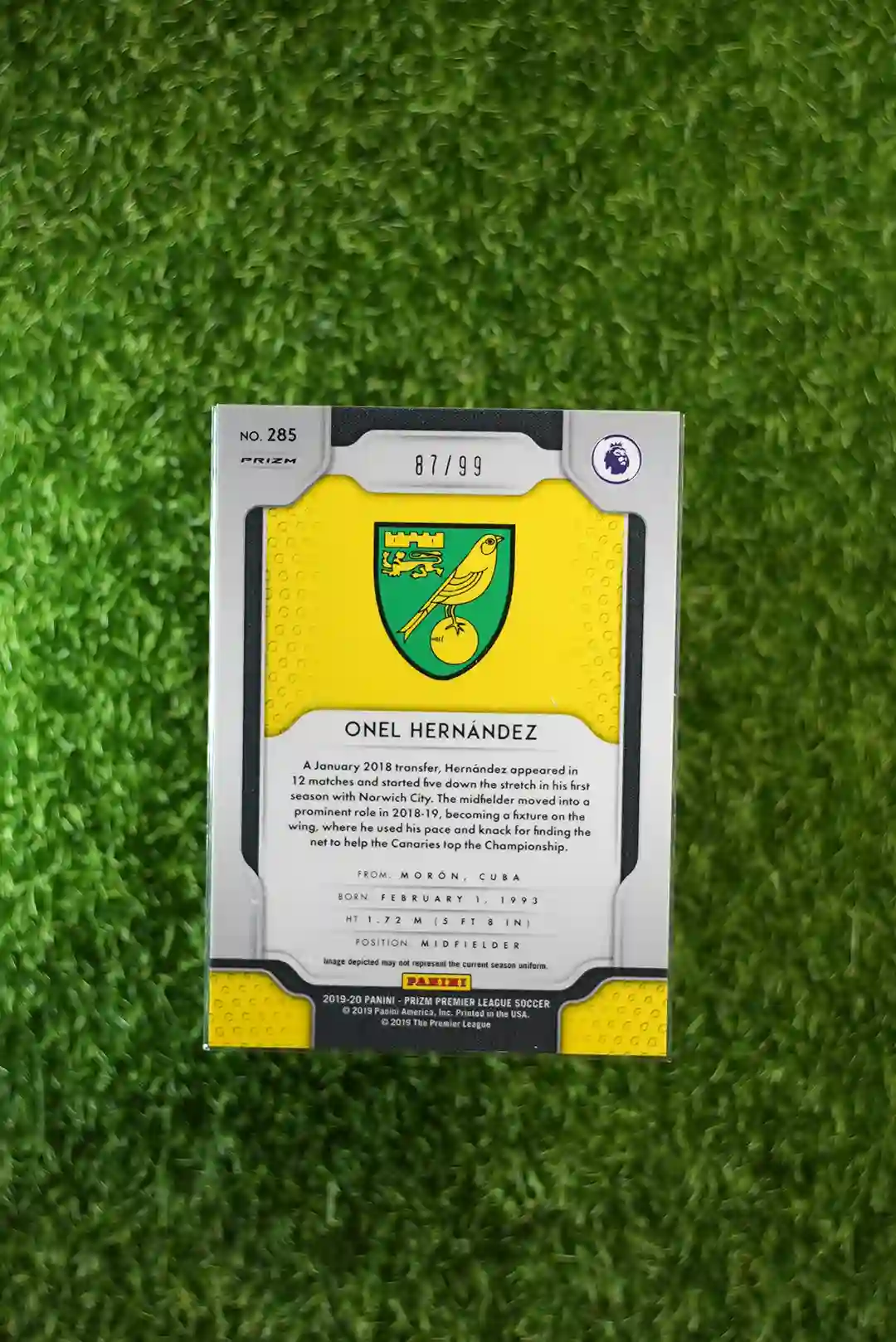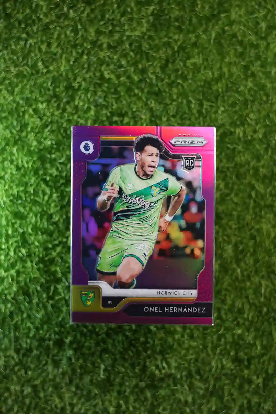 & Free Shipping2019 Prizm Premier League Soccer Onel Hernandez Purple Prizm Rookie Card, numbered out of 99.