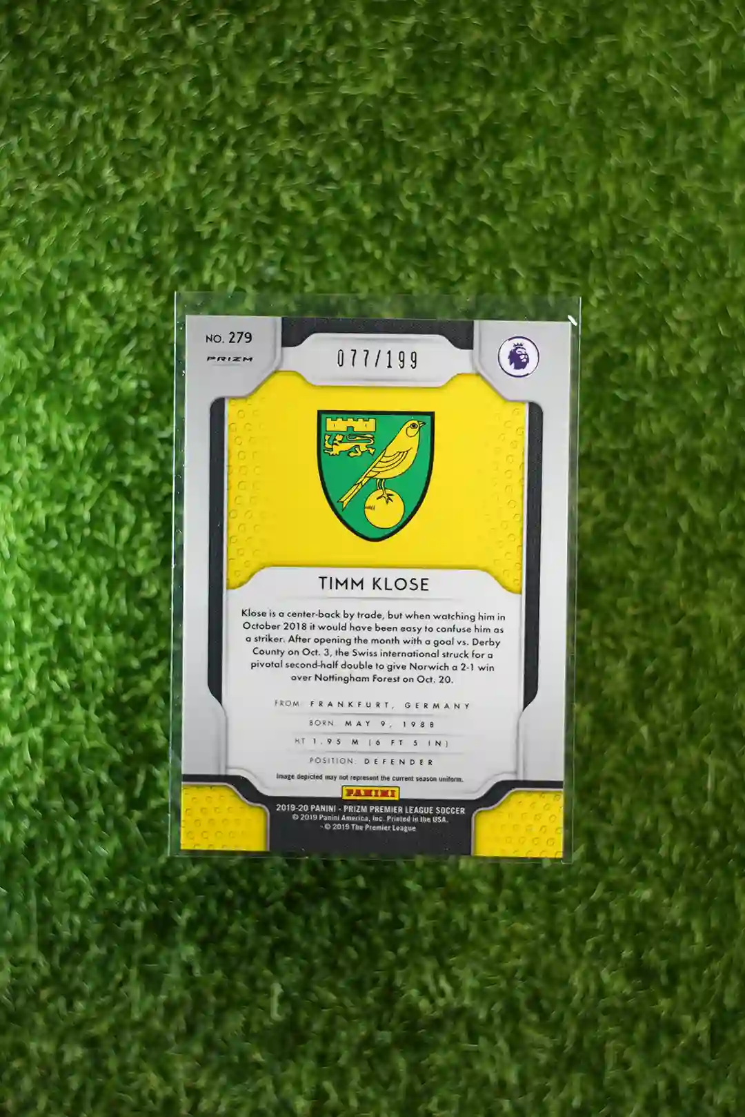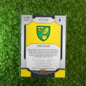 2019 Prizm Premier League Soccer Timm Klose Blue Prizm, numbered to 199.