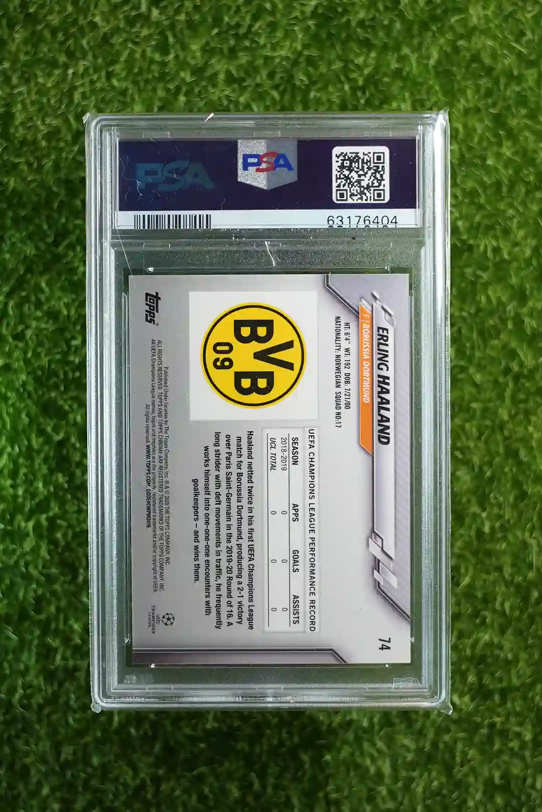 2019 Topps Chrome UCL Sapphire Edition Erling Haaland PSA 10