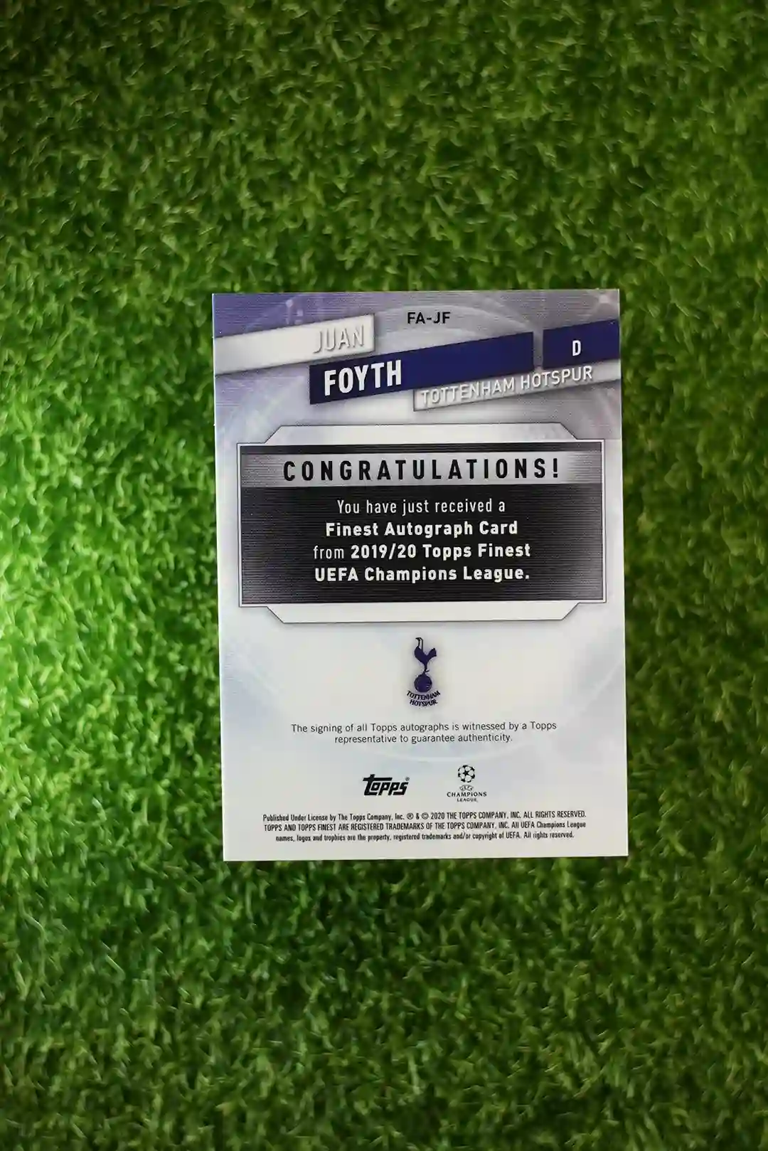 & Free ShippingThis is an autograph card featuring Juan Foyth from the 2019 Topps Finest UEFA Champions League series, part of a limited print run of 99 copies.