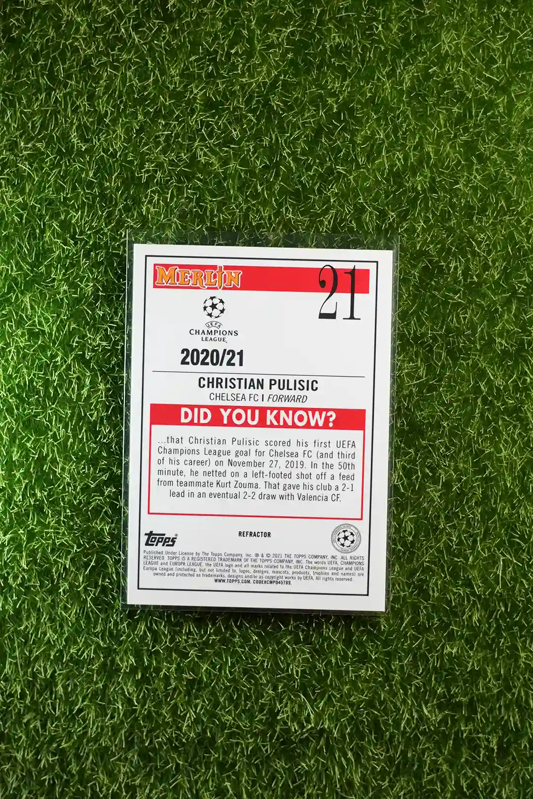 / 2020/21 Merlin Champions League Christian Pulisic Refractor 21