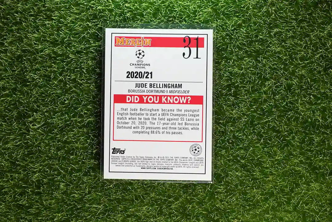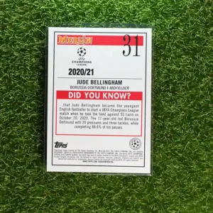 This is the 2020/21 Merlin UEFA Champions League Jude Bellingham Rookie Card, card number 31.
