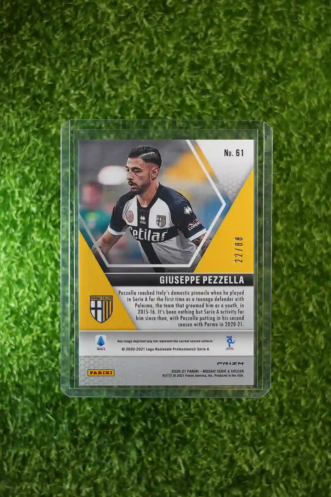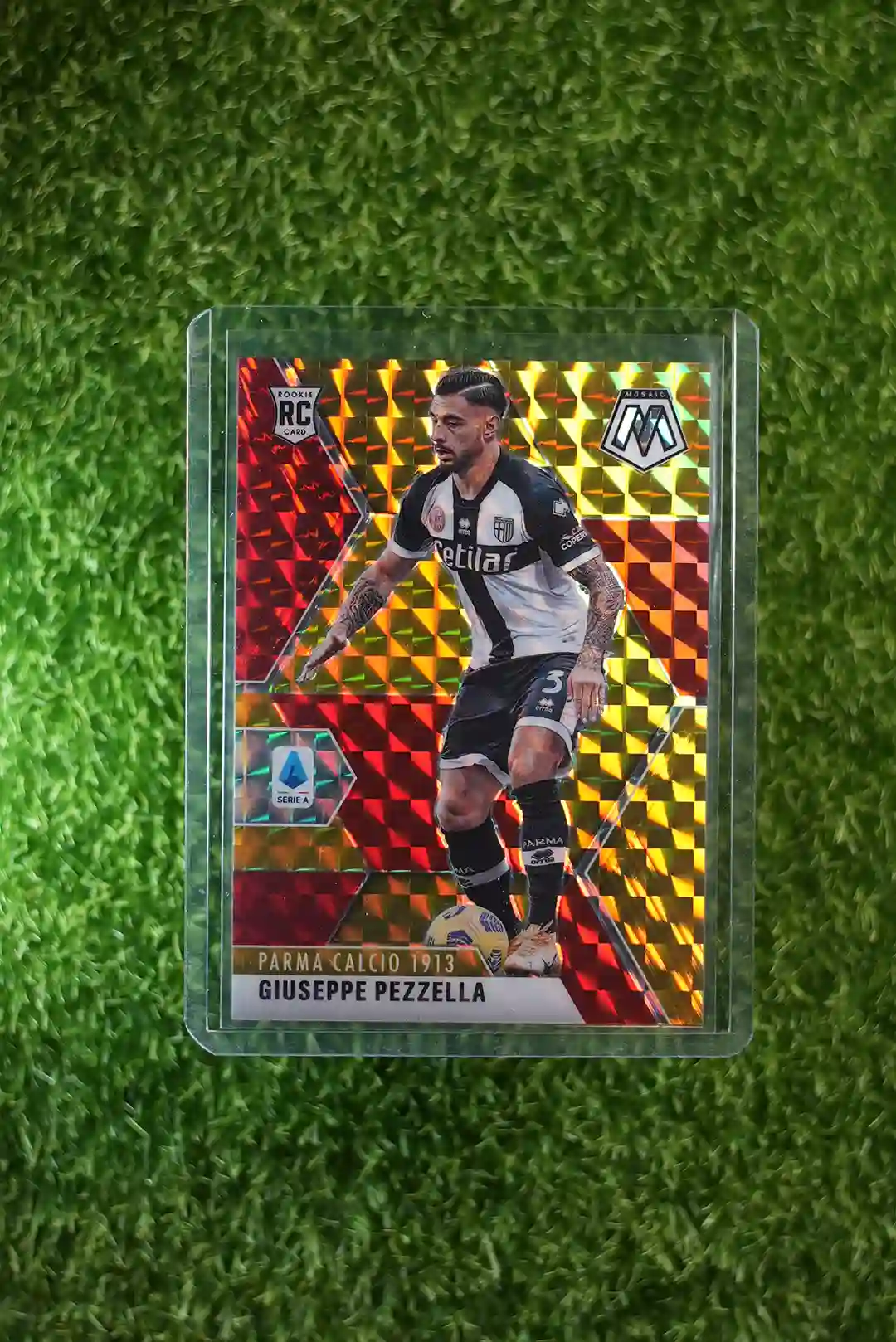 2020-21 Mosaic Giuseppe Pezzella RC Red Prizm, limited to just 99 copies.