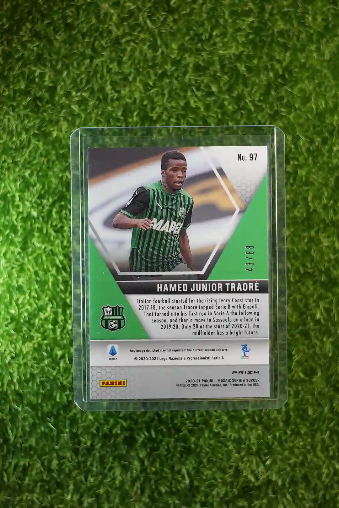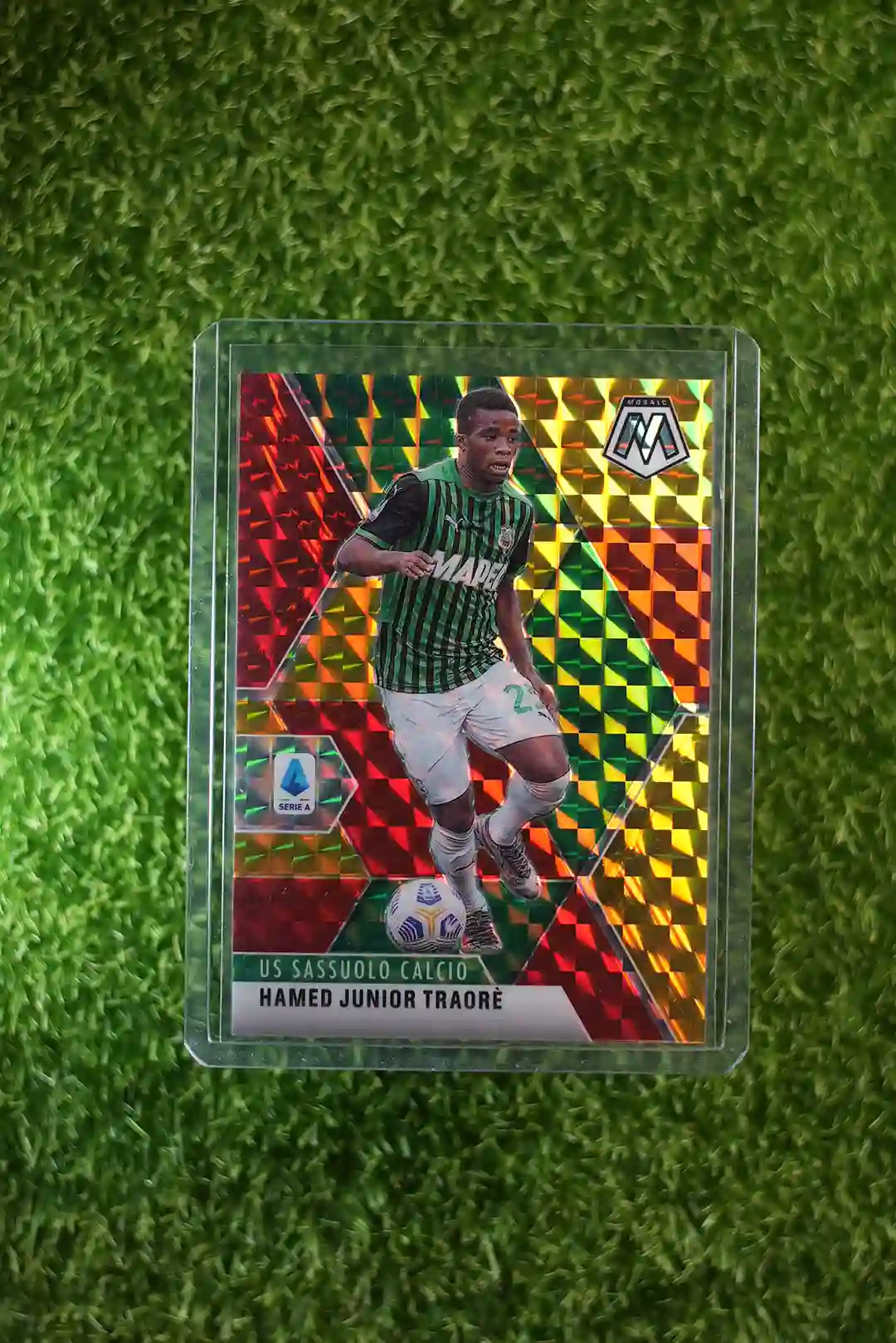 2020-21 Mosaic Hamed Junior Traorè Red Prizm card, numbered to 99.