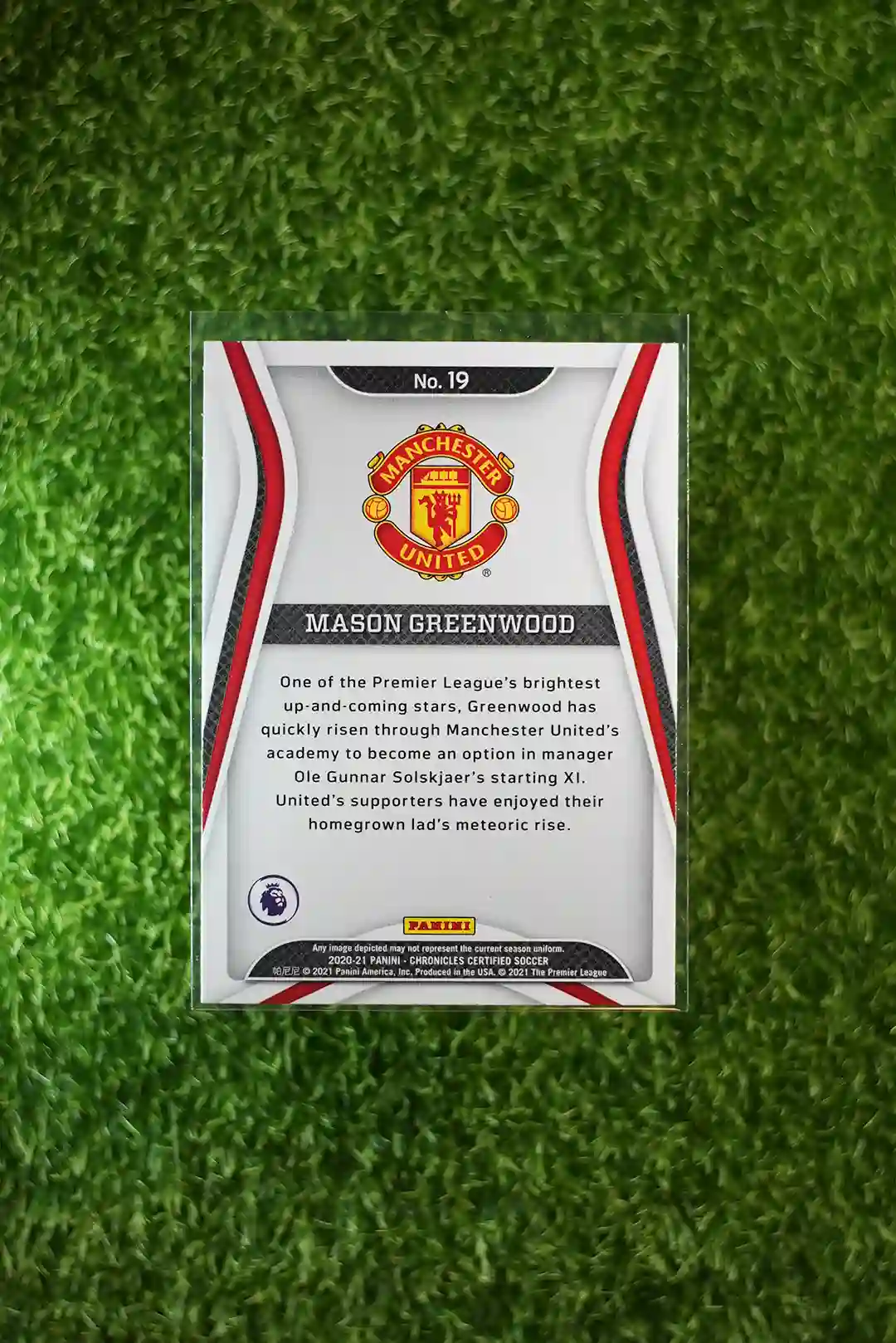 2020-21 Panini Chronicles Certified Soccer Mason Greenwood No. 19 card.