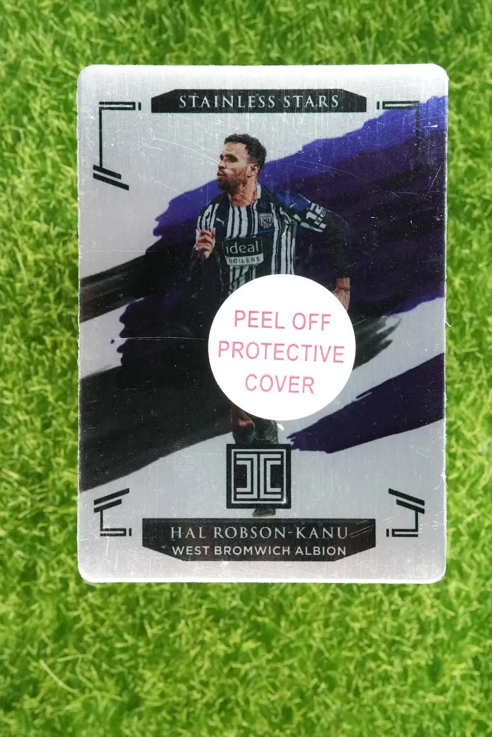 A premium collectible of the Welsh international, Hal Robson-Kanu. This is the 2020-21 Panini Impeccable “Stainless Stars” card. This card is crafted from a solid piece of stainless steel. This is a limited edition, hand-numbered 5 out of 57. A unique and stylish addition to any collection.