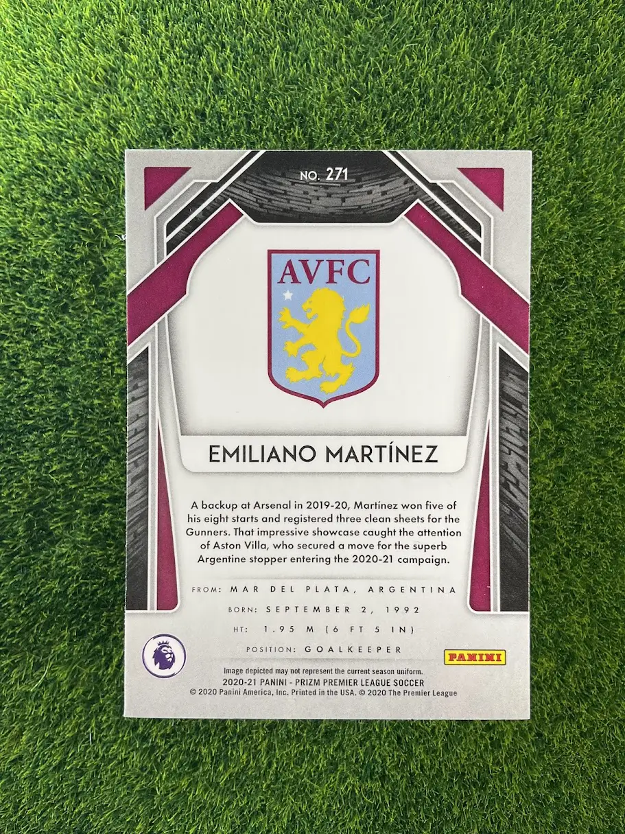 & Free ShippingThis Emiliano Martínez rookie card from the 2020-21 Panini Prizm series features a Silver Prizm parallel.