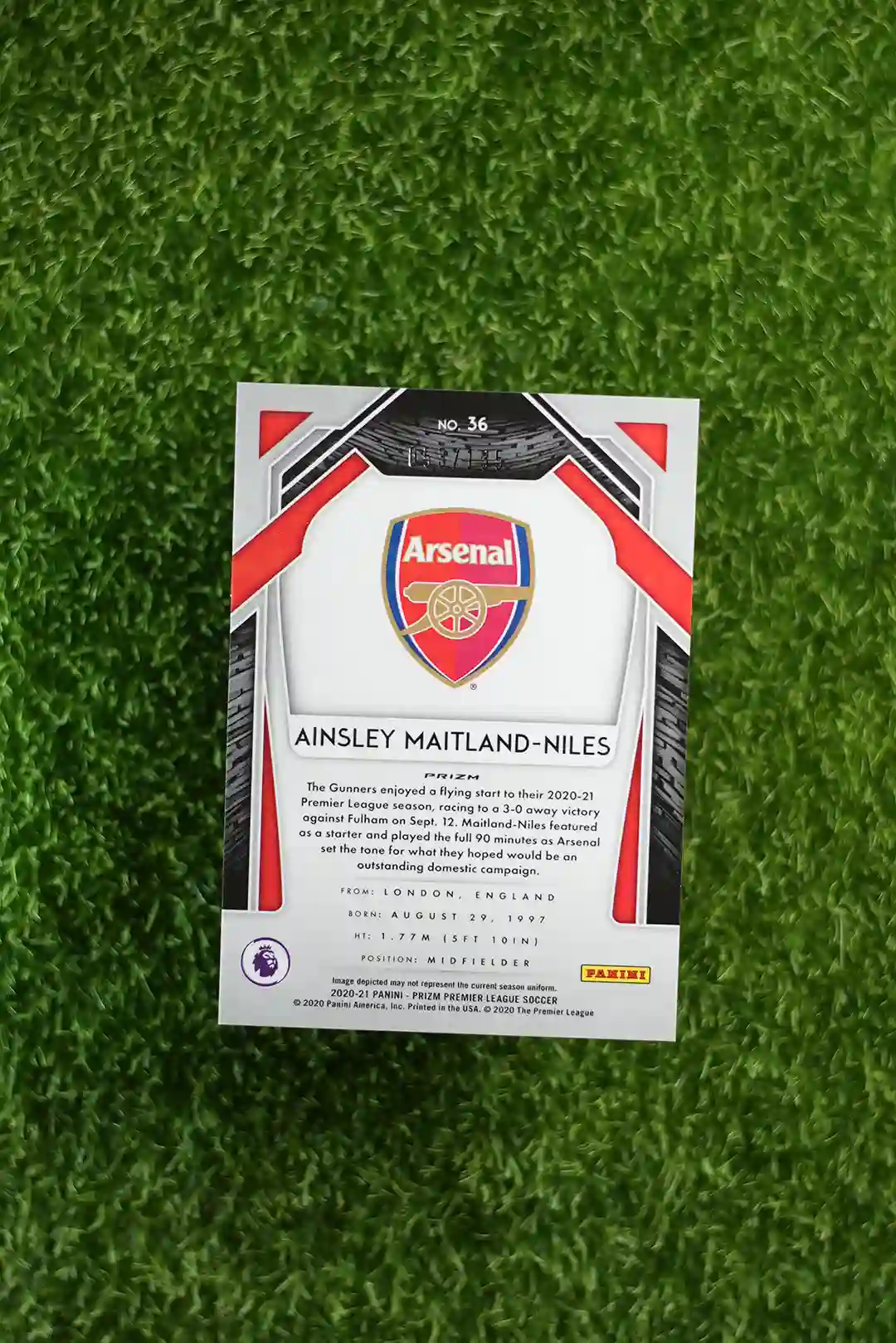& Free ShippingPresenting the 2020-21 Panini Prizm Premier League Soccer #36 Ainsley Maitland-Niles Red Hyper Prizm parallel card.