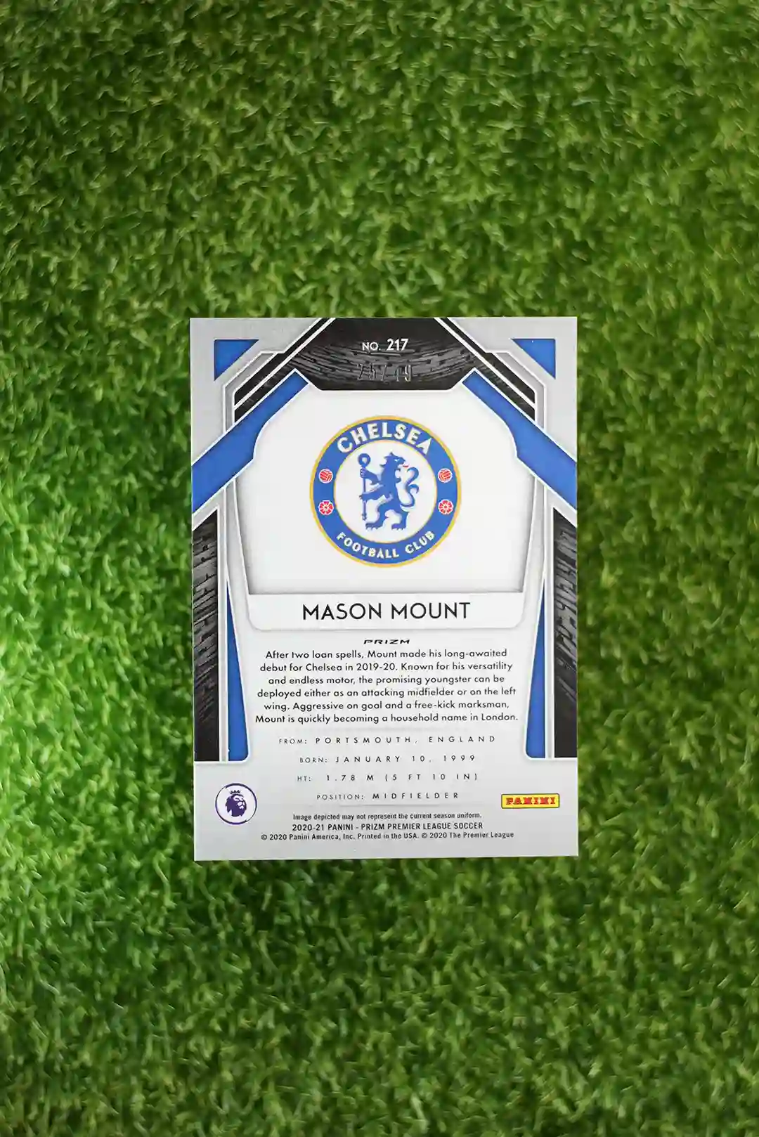 & Free ShippingThis is the 2020-21 Panini Prizm Premier League Soccer Mason Mount Green Prizm Parallel card, numbered #217.