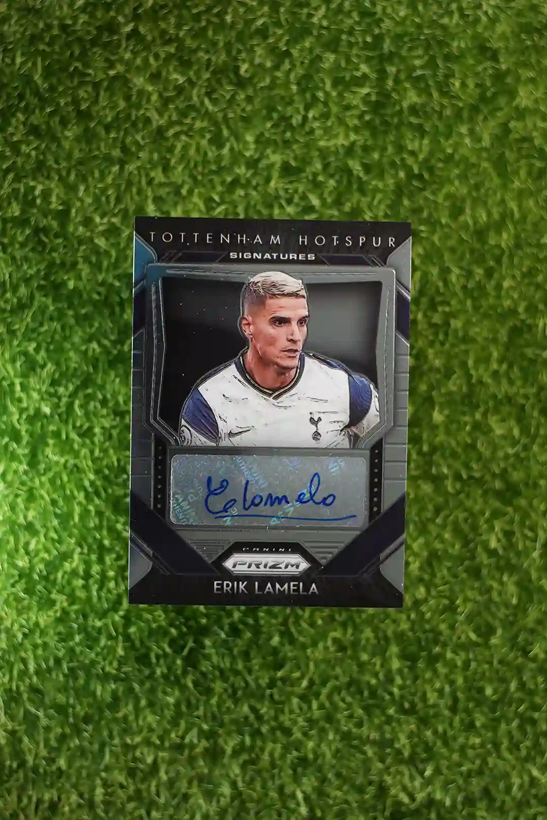 A 2020-21 Prizm Premier League Soccer Erik Lamela Signatures autograph card.