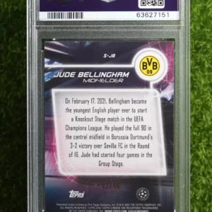 A vibrant and unique card from a special collaboration, this is the 2020-21 Topps Chrome x Steve Aoki UCL Jude Bellingham Singularity Neon Yellow parallel. This set was a team-up between Topps and the world-famous DJ Steve Aoki, resulting in some truly wild and creative designs. The ‘Singularity’ insert is a standout, and the Neon Yellow parallel is a rare and eye-catching version. Jude Bellingham is a generational talent, and this card captures him during his early days at Borussia Dortmund. It’s a fun, scarce, and valuable card that will always stand out in a collection.