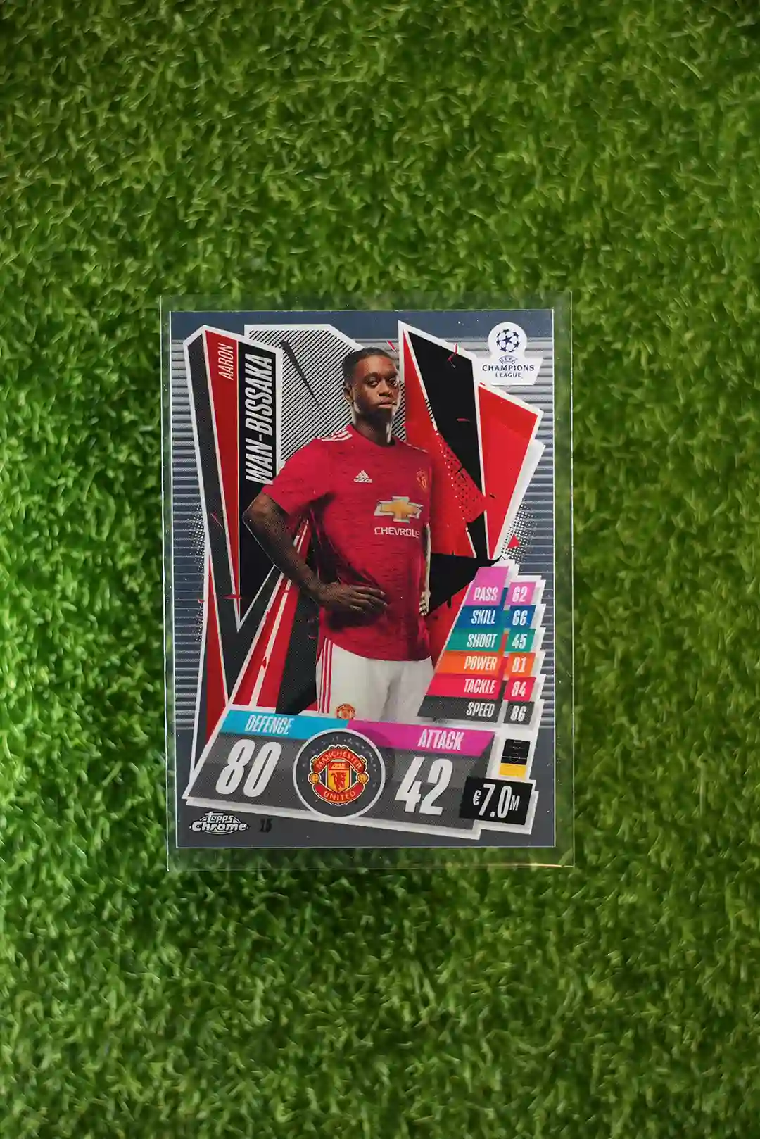 A 2020-21 Topps Match Attax Champions League trading card featuring Aaron Wan-Bissaka.