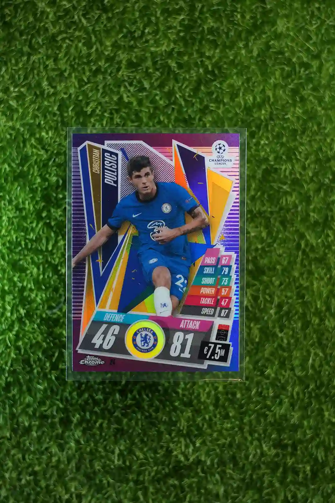 & Free Shipping2020/21 Topps Match Attax Champions League & Europa League Christian Pulisic Base Purple Parallel card, numbered out of 299.