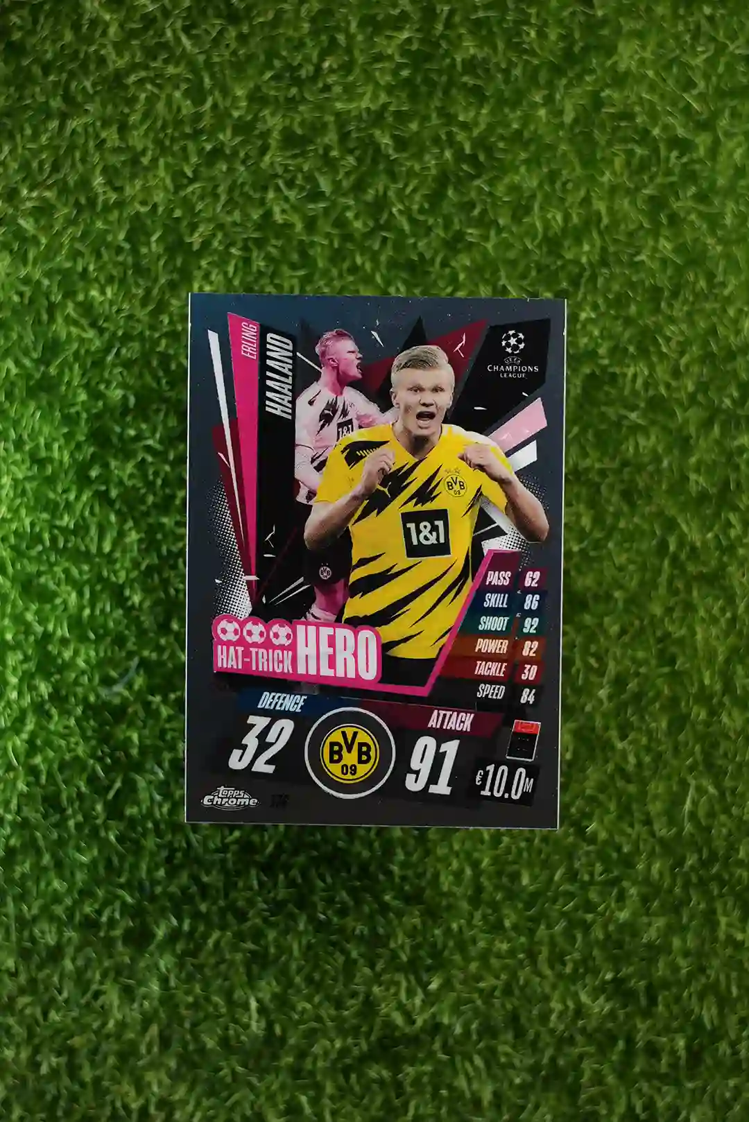 & Free ShippingThis listing is for the 2020/21 Topps Match Attax ‘Hat-Trick Hero’ card, featuring the prolific striker Erling Haaland. A highly desirable insert card, it celebrates a standout performance from one of football’s biggest stars.