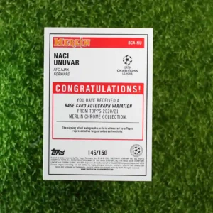 2020/21 Topps Merlin Chrome Naci Unuvar Base Card Autograph Variation 146/150