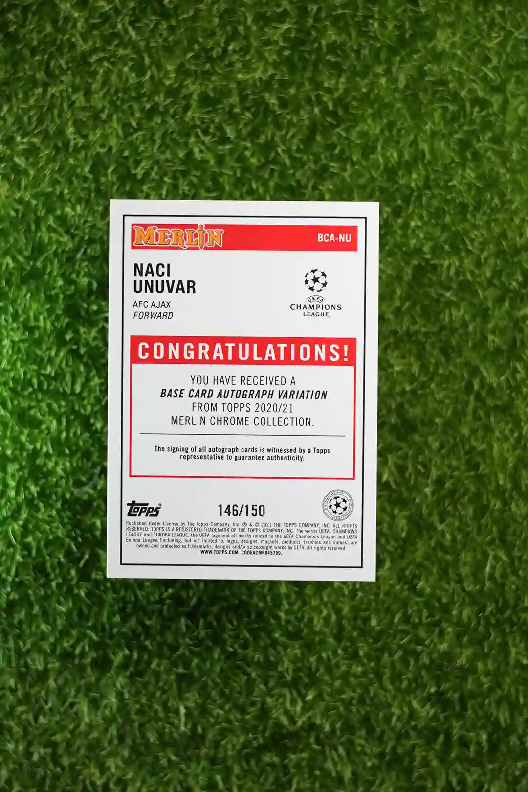 & Free Shipping2020/21 Topps Merlin Chrome Naci Unuvar Base Card Autograph Variation, limited to 150 copies.