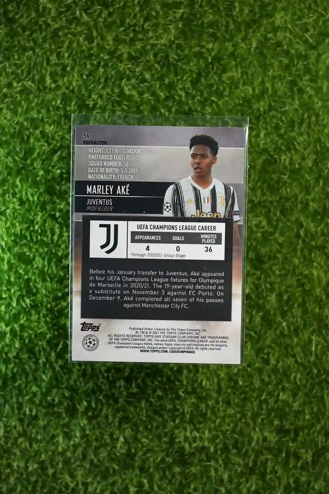 / 2020-21 Topps Stadium Club Chrome UEFA Champions League Marley Aké RC No 56