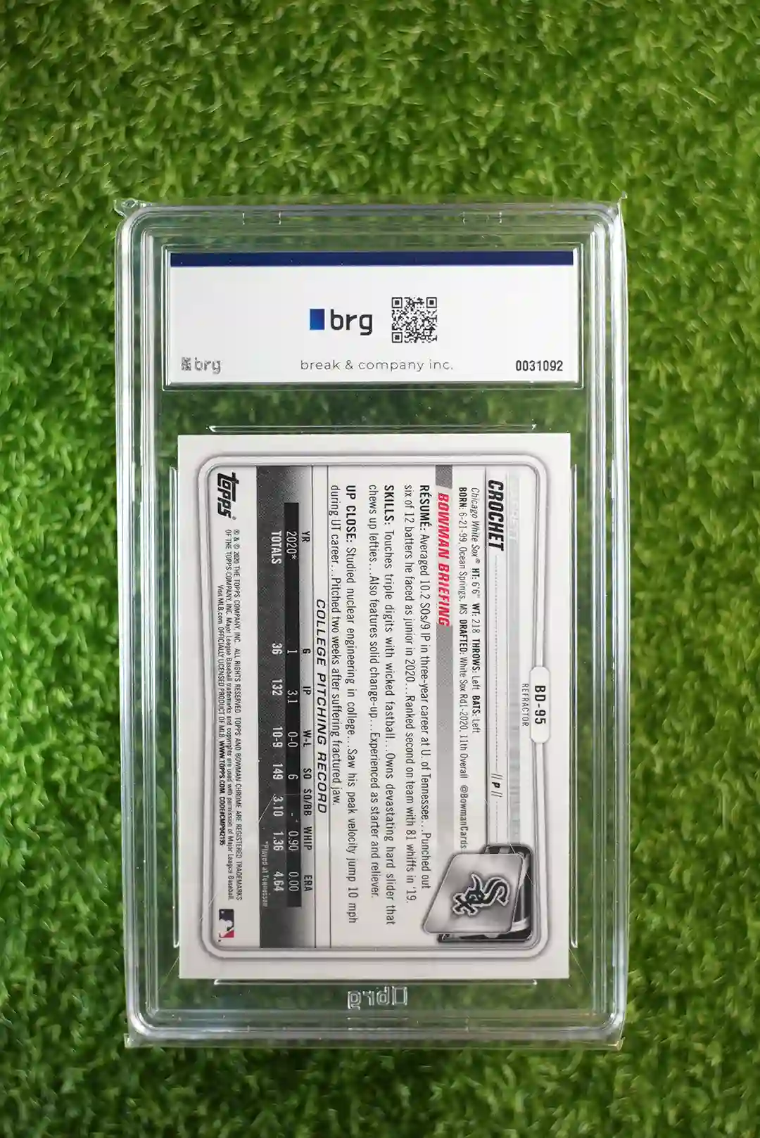 2020 Bowman Draft Chrome Garrett Crochet Refractor Baseball Card #BD95.
