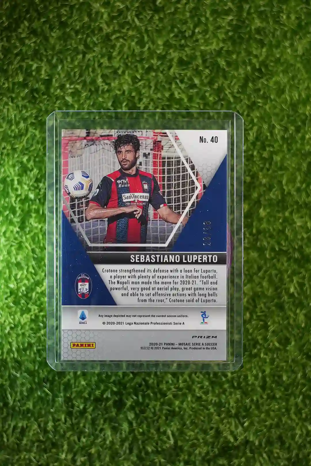 2020 Panini Mosaic Serie A Soccer Sebastiano Luperto Rookie Card, numbered to 99.
