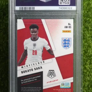 Tags: 2020, Arsenal, Autograph, Bukayo Saka, Circles Parallel, England, Mosaic, Panini, Rookie Card, UEFA Euro