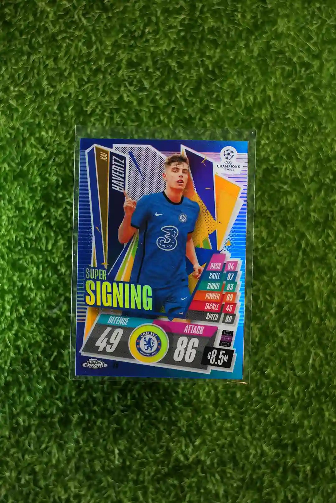 & Free ShippingKai Havertz 2020 Match Attax UCL/UEL Super Signing Blue Chrome card, limited to 50 copies.