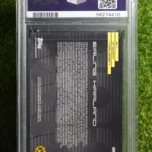 A great card from a unique and limited set! This is the base card from the 2020 Topps x BVB Erling Haaland collaboration. While not serial numbered, this card is still a special collectible due to the limited nature of the set’s release. It features a great design and captures the Norwegian superstar during his incredible goal-scoring run at Borussia Dortmund. For fans of Erling Haaland who are looking for a more affordable option from this special set, the base card is a fantastic choice. It’s a great way to celebrate a modern legend and a unique moment in trading card history.