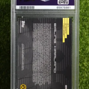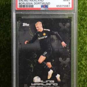 An extremely rare card of a generational superstar, this is the 2020 Topps x BVB Erling Haaland, serial numbered 25/25. This card is from a special, limited-edition collaboration set between Topps and Borussia Dortmund, making it a unique and highly sought-after collectible. As the last card in the print run, it holds extra appeal for many collectors. Erling Haaland is a phenomenon, a player whose goal-scoring records have taken the football world by storm. This rare, numbered card from his Dortmund days is a fantastic investment piece and a prized possession for any Haaland fan.