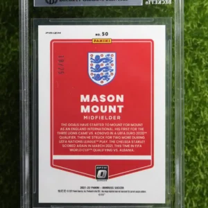 A sleek, rare, and stylish card of a top midfielder. This is the 2021-22 Donruss Optic Mason Mount Black Velocity, serial numbered to a very limited 25 copies. The Donruss Optic brand is a cornerstone of the modern hobby, and the ‘Velocity’ parallels are a fan-favorite for their unique, lined pattern. The Black Velocity is the rarest of them all, making this a highly sought-after card for any Mason Mount or Chelsea collector. Its dark design, combined with the player’s popularity, makes it a cool and valuable piece that will always stand out in a collection.