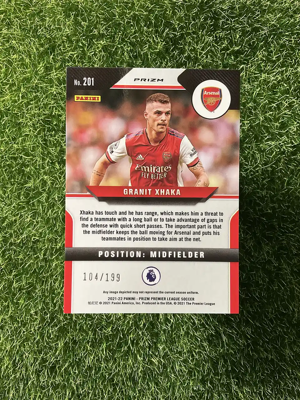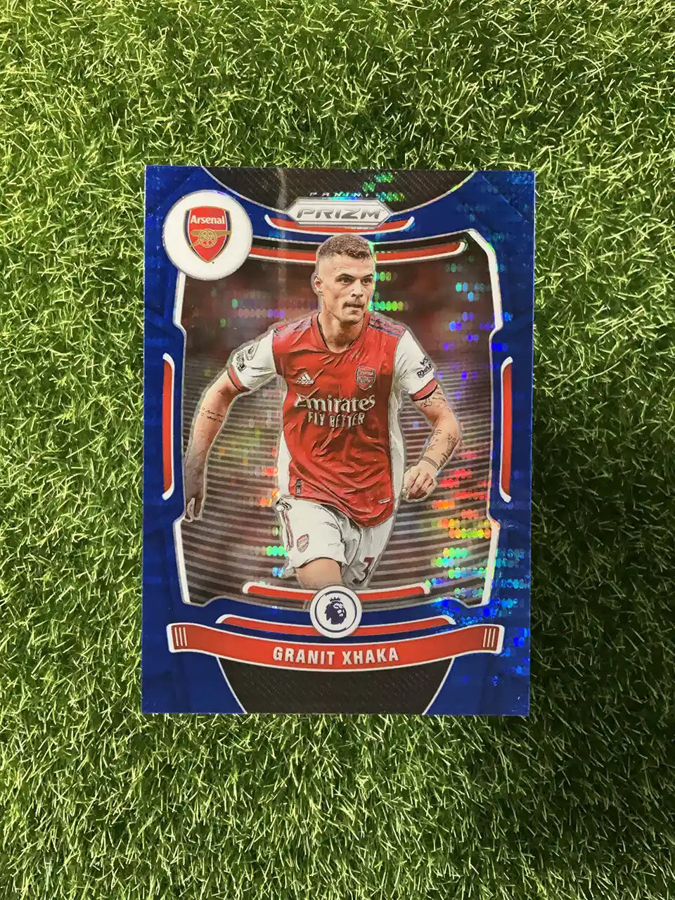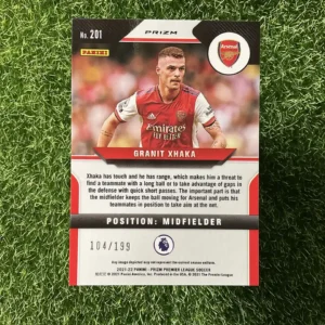 & Free ShippingThis 2021-22 Panini Prizm Premier League Soccer card features a Blue Hyper Prizm parallel of Granit Xhaka. This is a limited edition card, numbered 104/199.