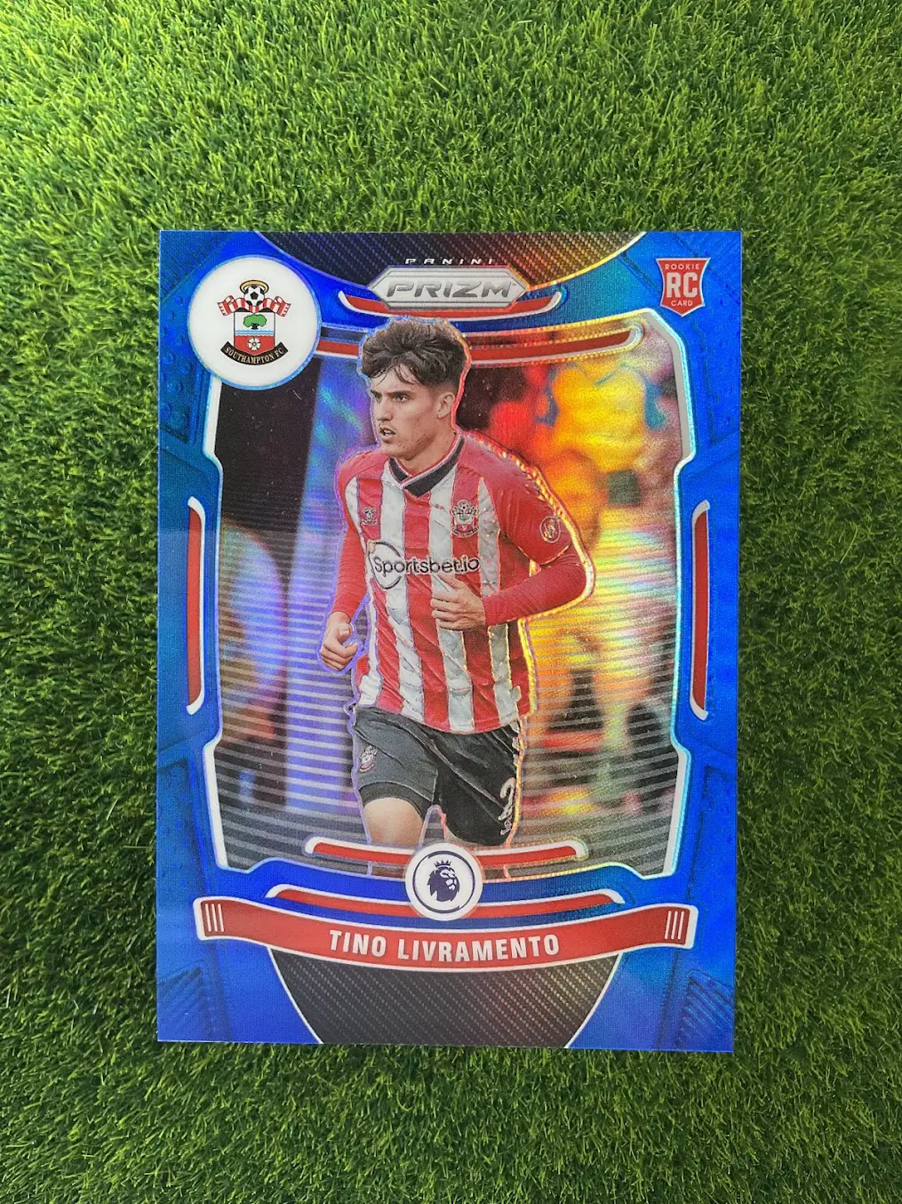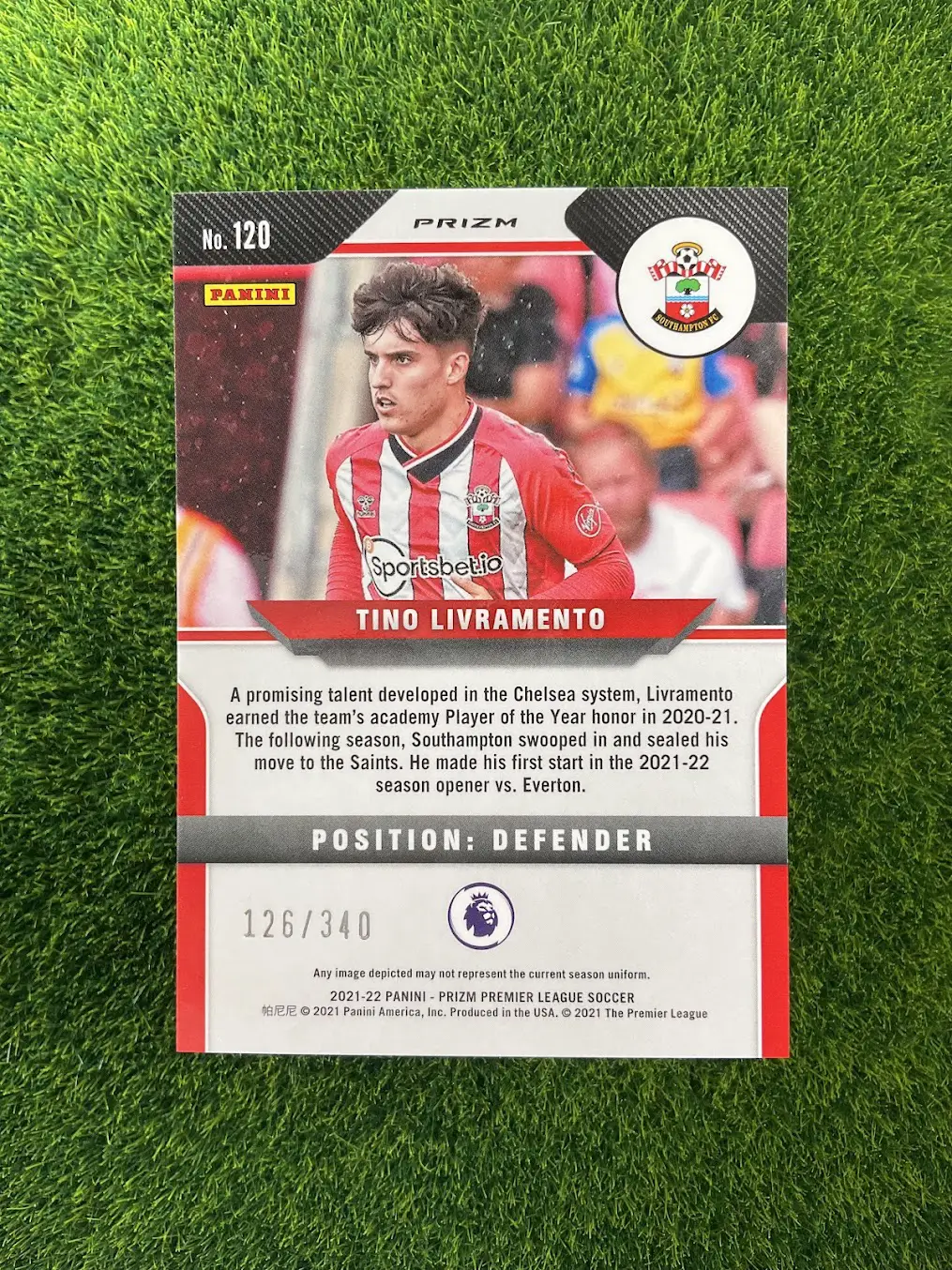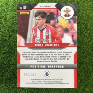 Tags: 2021-22 Panini Prizm, Blue Prizm, Numbered /340, RC, Rookie Card, Southampton, Tino Livramento