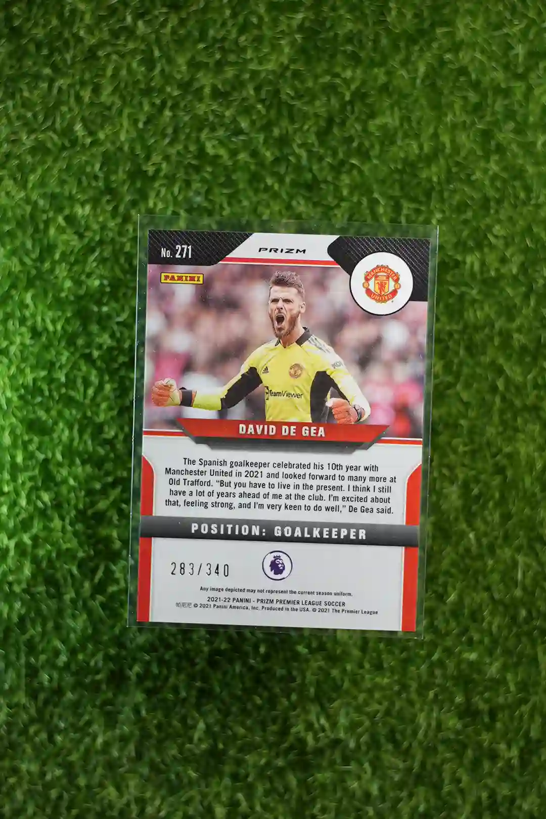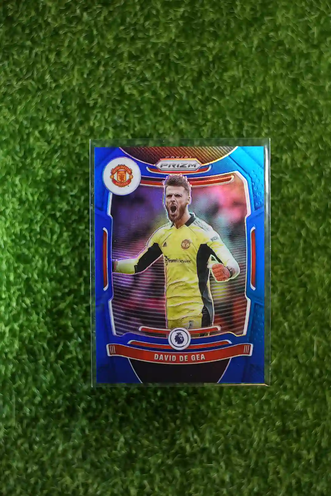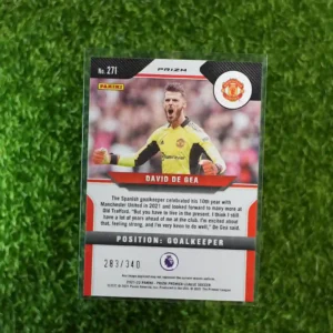 2021-22 Prizm Premier League Soccer David De Gea Blue Prizm, limited to 340 copies.