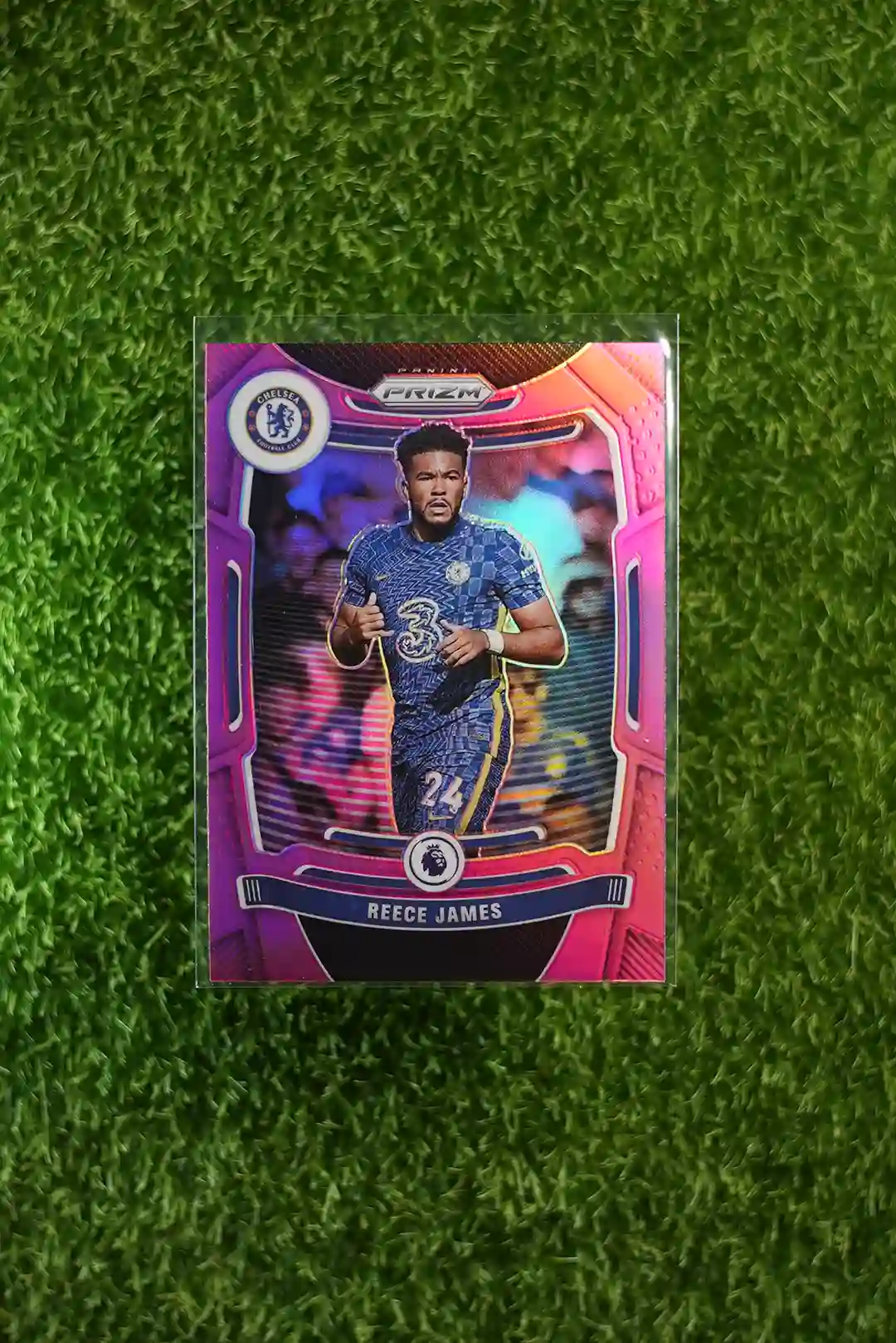 & Free ShippingThis is the 2021-22 Panini Prizm Premier League Soccer Pink Prizm parallel card featuring Reece James of Chelsea FC.