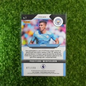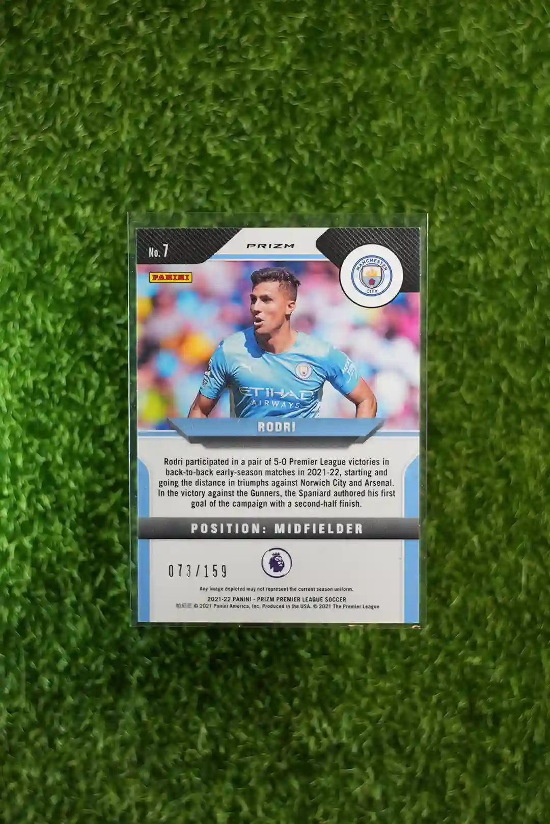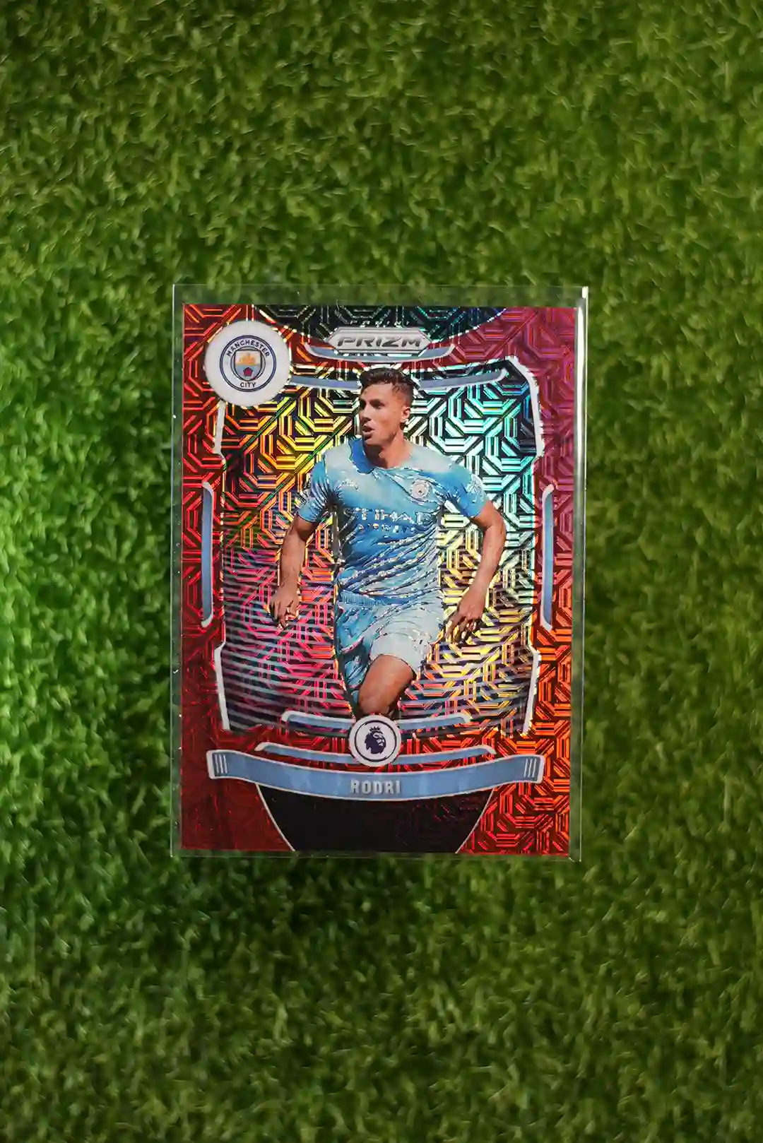 2021-22 Prizm Premier League Soccer Rodri Red Prizm parallel, limited to 159 copies.