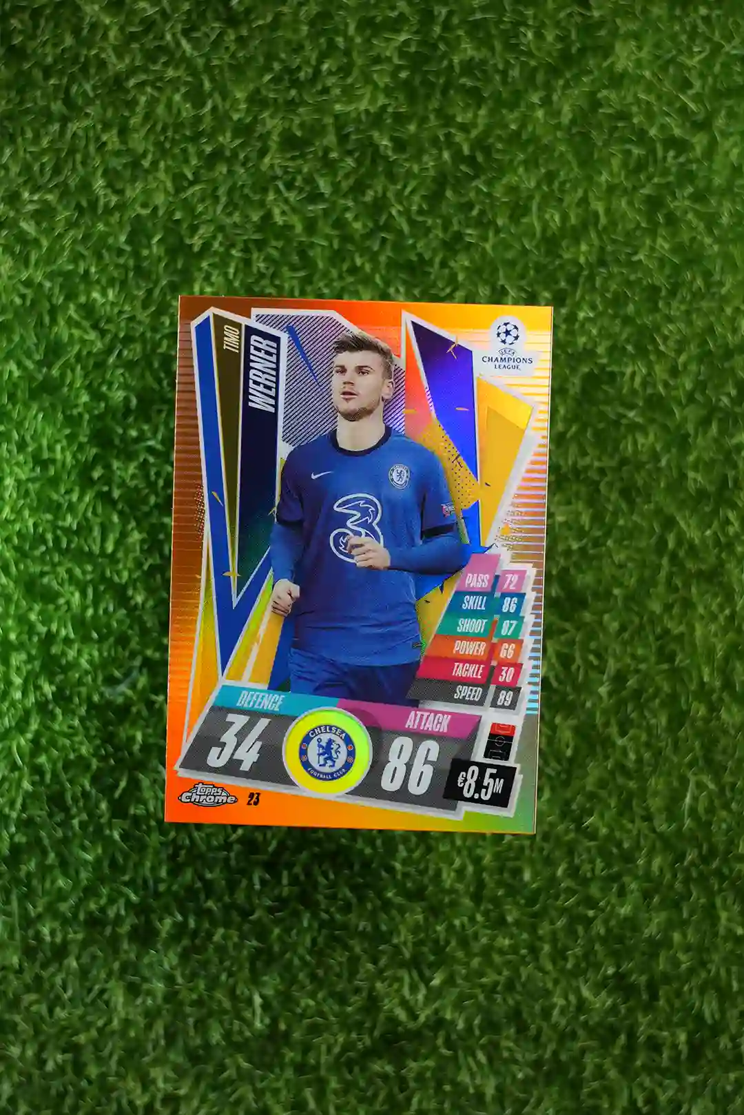 This is a 2021-22 Topps Match Attax Chrome card featuring Timo Werner, limited to 25 copies worldwide.