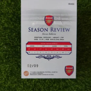 An ultra-rare parallel of the Spanish full-back, Hector Bellerin. This is the 2021 Futera Arsenal “Season Review” parallel, numbered to just 9. This super short print (SSP), numbered 02/09, is a must-have for any serious collector of the former Arsenal star.