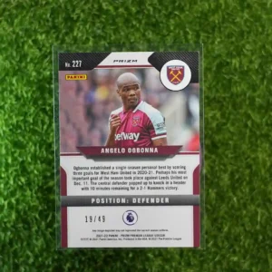 2021 Panini Prizm Premier League Soccer Angelo Ogbonna Purple Prizm 19/49