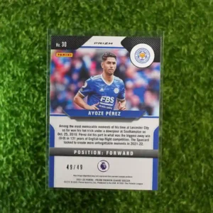 & Free Shipping2021 Panini Prizm Premier League Soccer Ayoze Pérez Purple Prizm parallel, serially numbered to 49 copies.