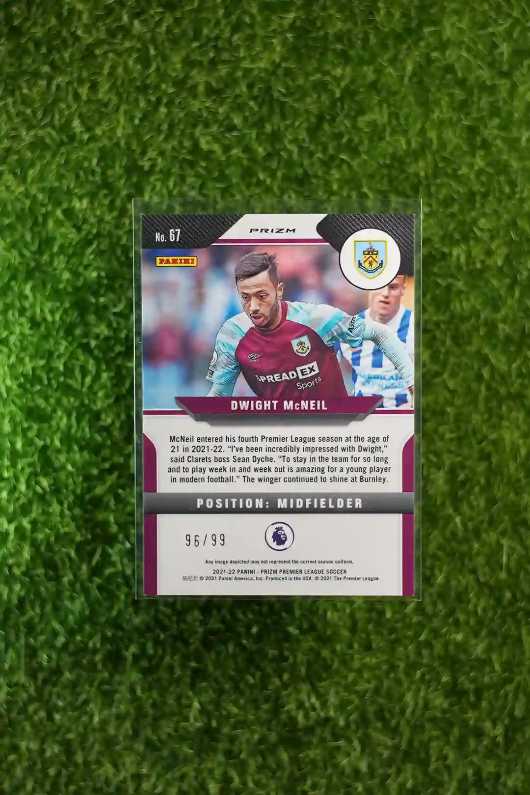 2021 Panini Prizm Premier League Soccer Dwight McNeil Purple Prizm (#’d /99)