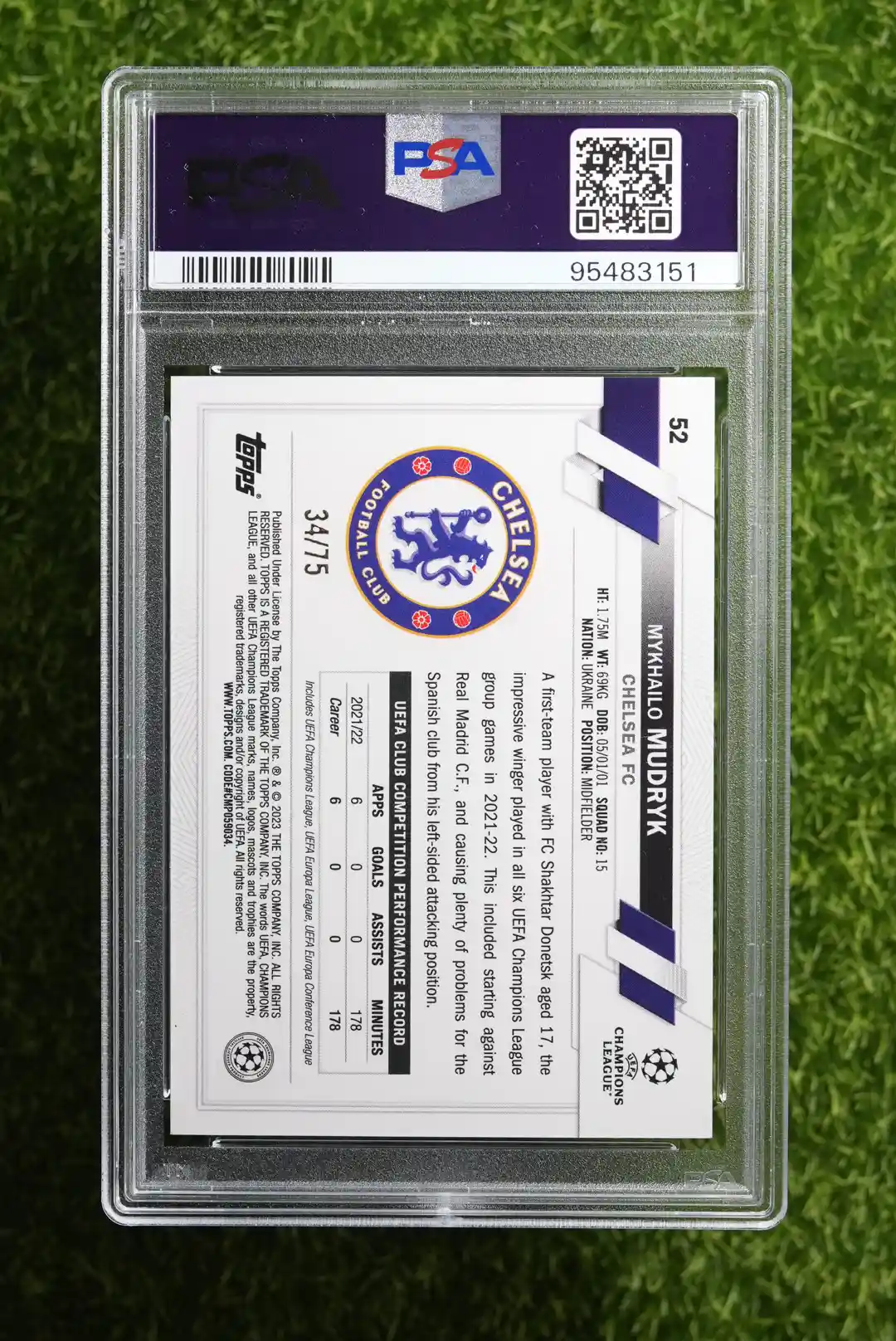 Tags: 2022-23, Chelsea, Mykhailo Mudryk, Purple Foil, Rookie Card, Serial Numbered, Shakhtar Donetsk, Topps, UEFA Club Competitions, Ukraine