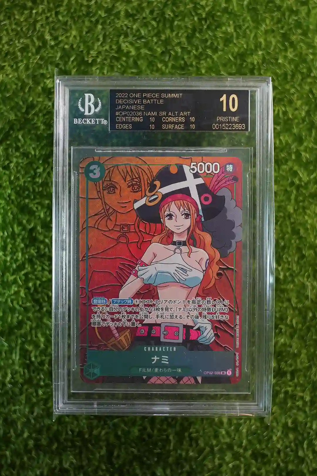 & Free ShippingThis is the 2022 One Piece Card Game (OPCG) Nami SR Alt Art card from the Decisive Battle (OP-02) set, card number 036. This highly sought-after collectible features unique alternate artwork, making it a standout piece for any One Piece TCG collection.
