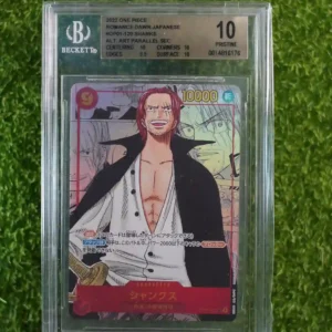 & Free ShippingPresenting the highly coveted 2022 One Piece Japanese Romance Dawn Shanks #OP01-120. This exceptional Alt Art Parallel Secret Rare (SEC) card features the iconic character Shanks and has been professionally graded a perfect Pristine 10, indicating its flawless condition.