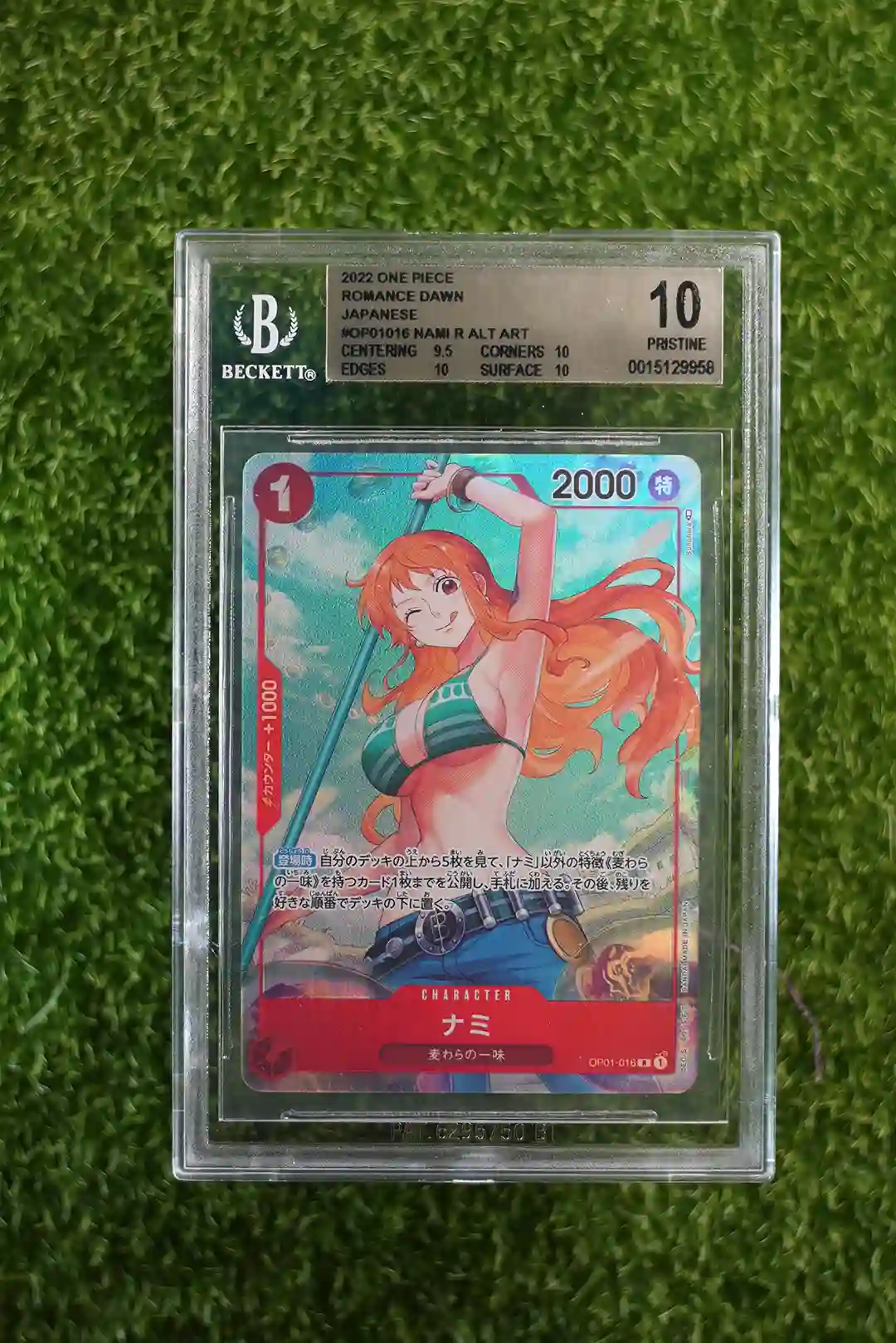 & Free ShippingPresenting the highly sought-after 2022 One Piece Romance Dawn Nami Alternate Art (OP01-016), graded BGS 10 Pristine.