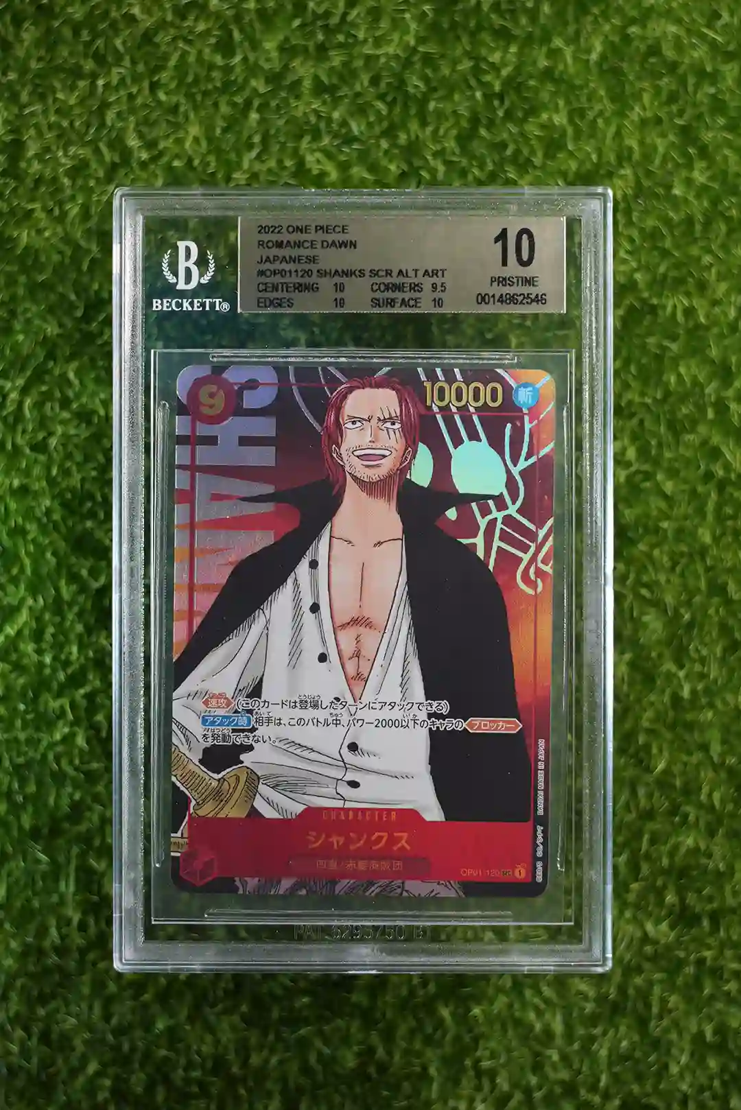 & Free ShippingShanks Secret Rare Alternate Art card from the 2022 One Piece Romance Dawn set, card number OP01-120.