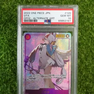 & Free ShippingThis listing showcases the highly coveted 2022 One Piece Uta Alternate Art Secret Rare card, identified by its set number OP02-120. This exceptional card has been professionally graded by PSA as a perfect 10 Gem Mint, signifying its flawless condition and making it a prime collector’s piece for fans of Uta and the One Piece universe.