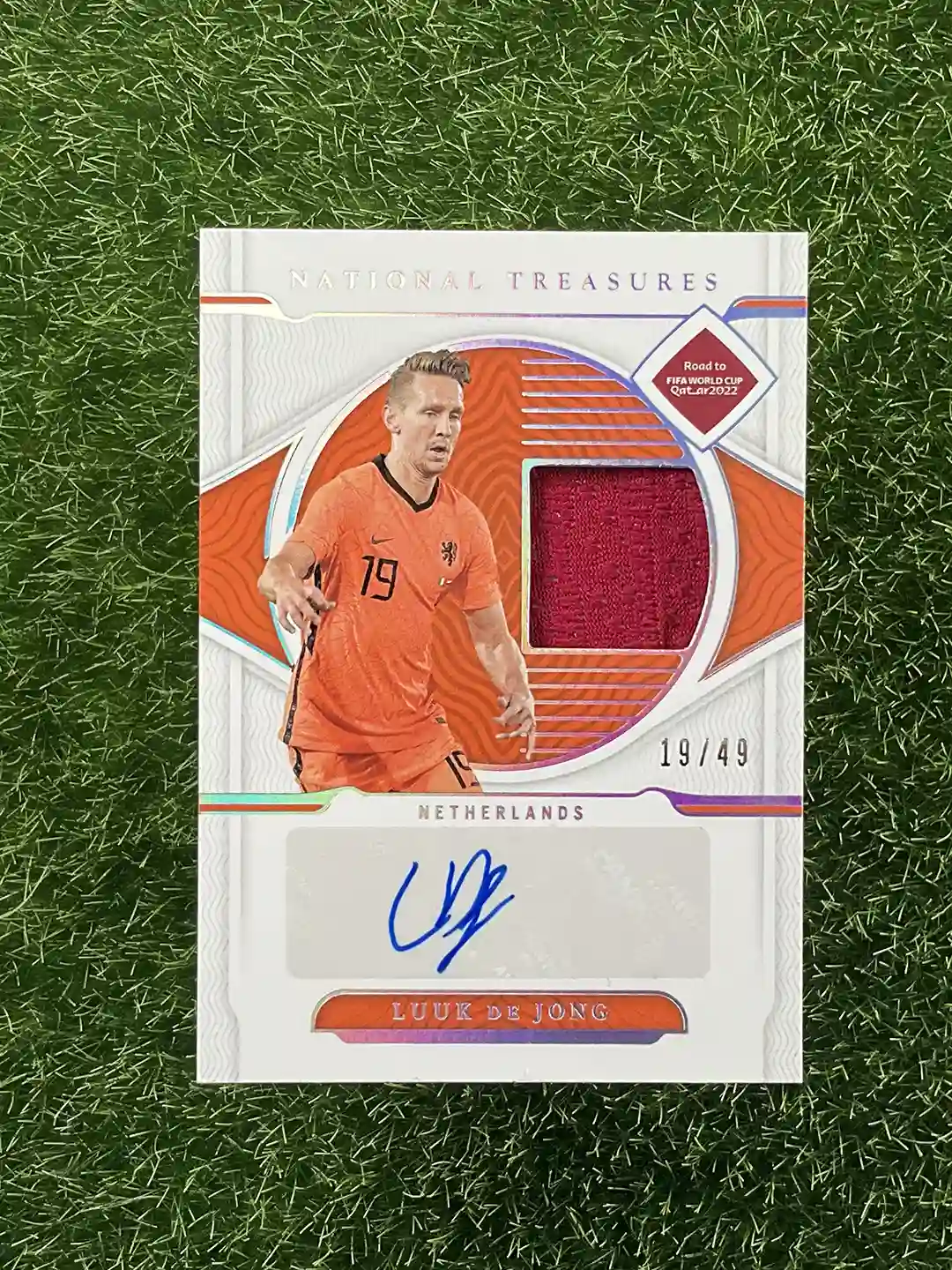 2022 Panini NETHERLANDS LUUK DE JONG National Treasures FIFA Road to World Cup Soccer MS-LDJ Auto, Player Worn/Used Jersey Swatch 19/49