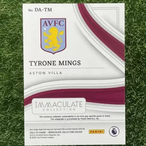 2023-24 Panini Aston Villa Tyrone Mings Immaculate Collection Soccer DA-TM Auto, Memorabilia (Jersey Swatch) 05/10
