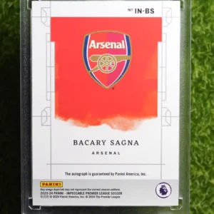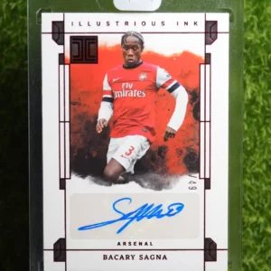 A premium autograph from a beloved Arsenal right-back! This is the 2023-24 Panini Impeccable Bacary Sagna Illustrious Ink Auto, numbered 1/49. The Panini Impeccable brand is known for its luxurious and high-quality cards, and the ‘Illustrious Ink’ insert is a perfect example. This card features a clean design and a bold, on-card autograph from Bacary Sagna. As the first card in the print run, it’s a particularly special find. For fans of the “Invincibles” era and collectors of Arsenal legends, this is a fantastic and sophisticated addition to any collection.