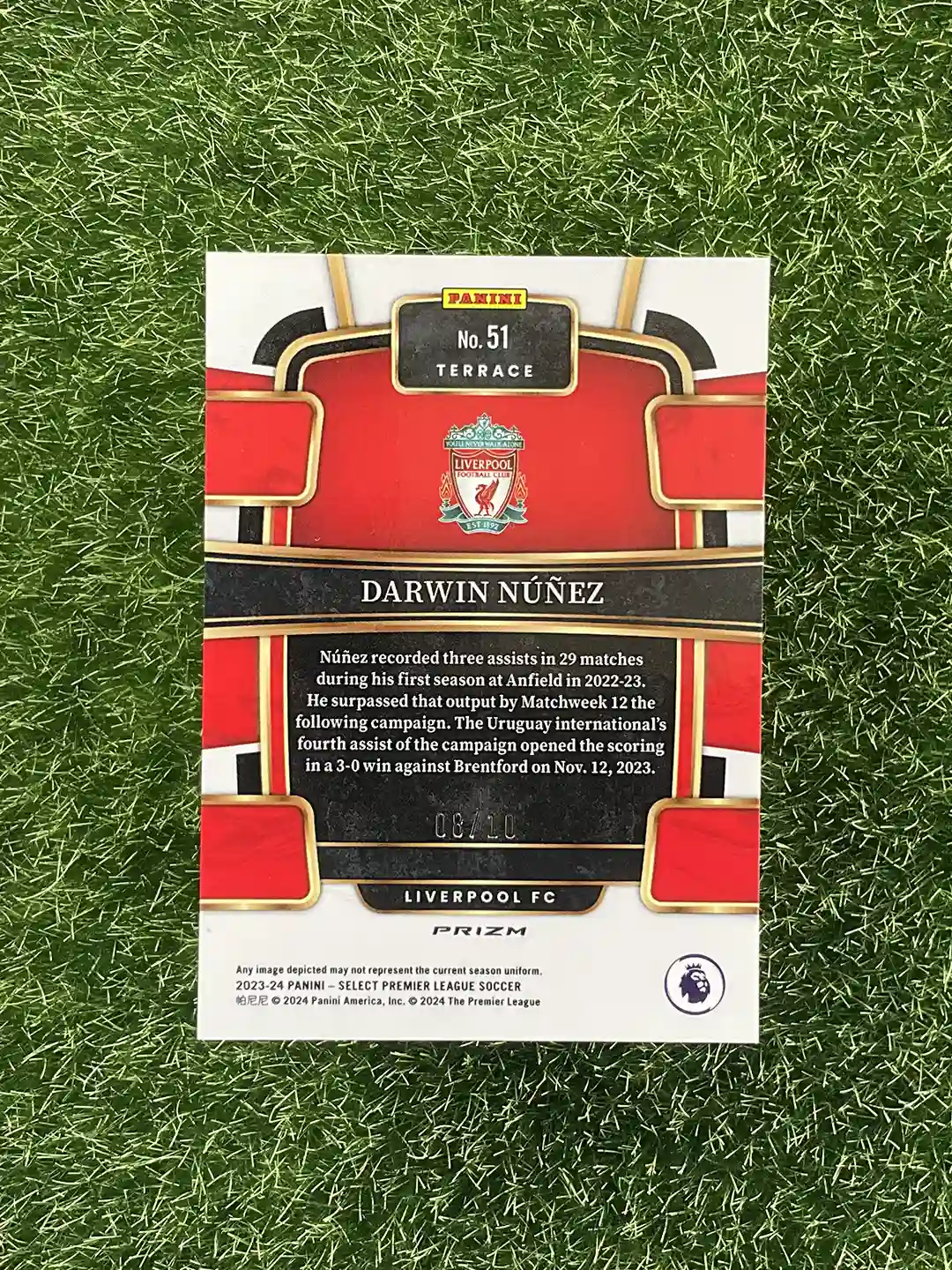 2023-24 Panini Liverpool FC Darwin Núñez Select Premier League Soccer – Terrace 51 Prizm 08/10